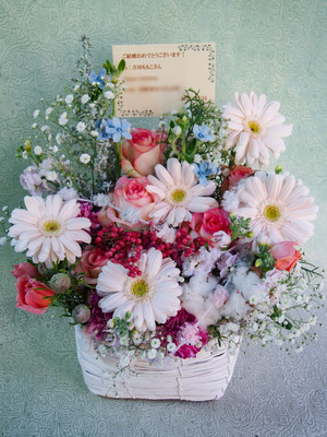 イラストレーター吉田ももこ様へ イラストの雰囲気をイメージしたご結婚祝い花