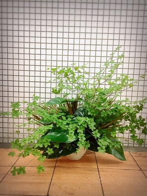 グリーンの葉物・枝物のみでおつくりしたグリーンのアレンジメント