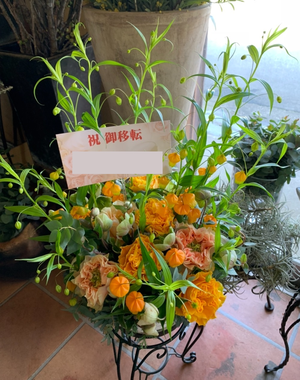 相手先企業様のコーポレートカラーでおつくりした移転お祝い花