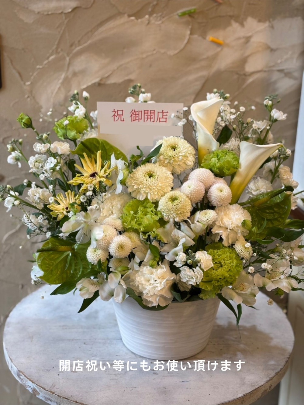 季節によって使用できるお花が異なるため、雰囲気が異なる場合があります。また、フラワーデザイナーが撮影した場所、角度によっても印象が異なることがあります。恐れ入りますが予めご了承ください。