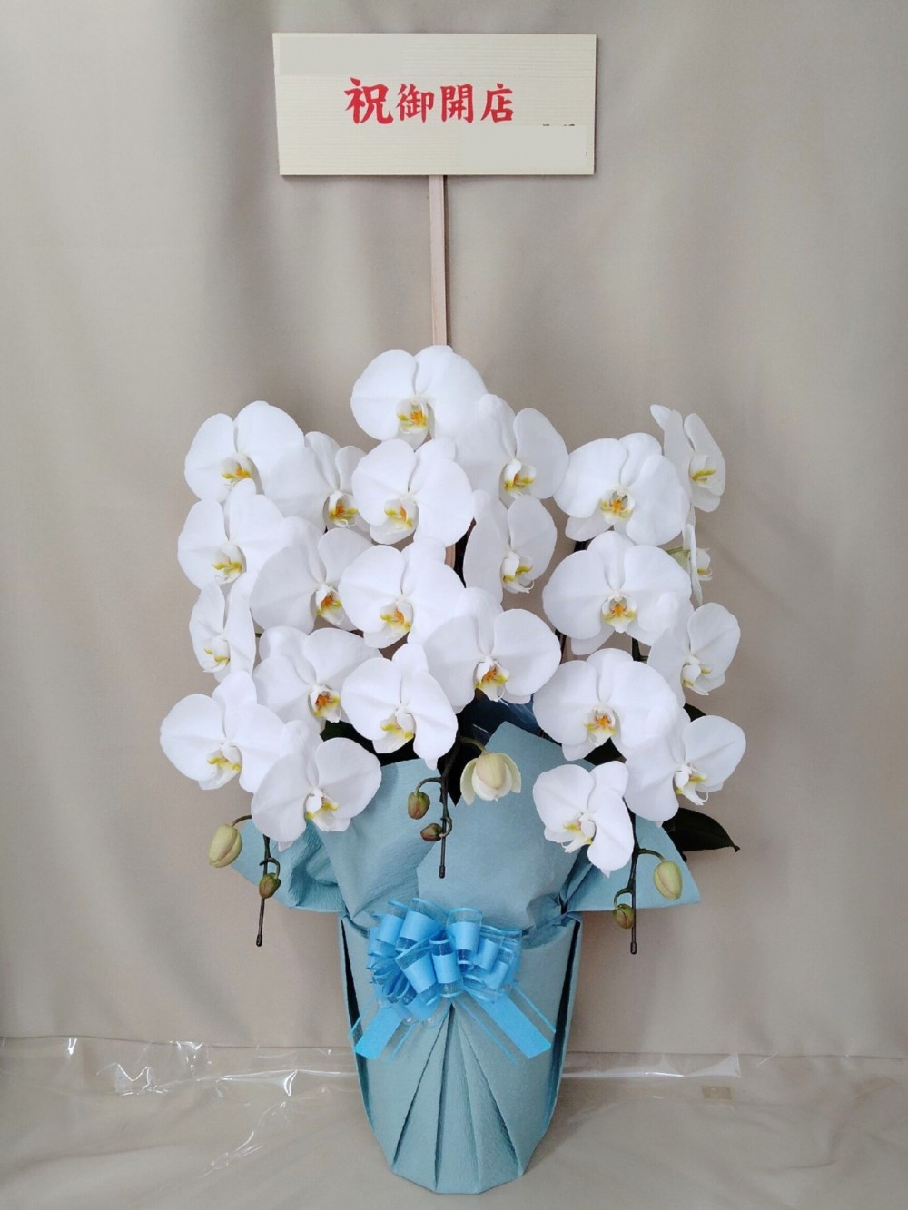 凛とした佇まいと圧倒的な存在感を誇る、 胡蝶蘭 大輪 30輪 3本立ち 白(つぼみ数含む)。 一輪一輪が美しく大きく咲き誇る大輪タイプは、格式高い贈り物として多くのシーンで選ばれている王道の胡蝶蘭です。 純白の花びらは「清潔」「誠実」「繁栄」を象徴し、贈る相手への敬意と祝意を上品に伝えます。 3本立で30輪(つぼみ含む)という十分なボリューム感がありながら、洗練されたバランスの取れた立ち姿は、エントランスや受付、会場装花としても存在感を放ちます。 長く美しさを楽しめるのも胡蝶蘭ならではの魅力です。