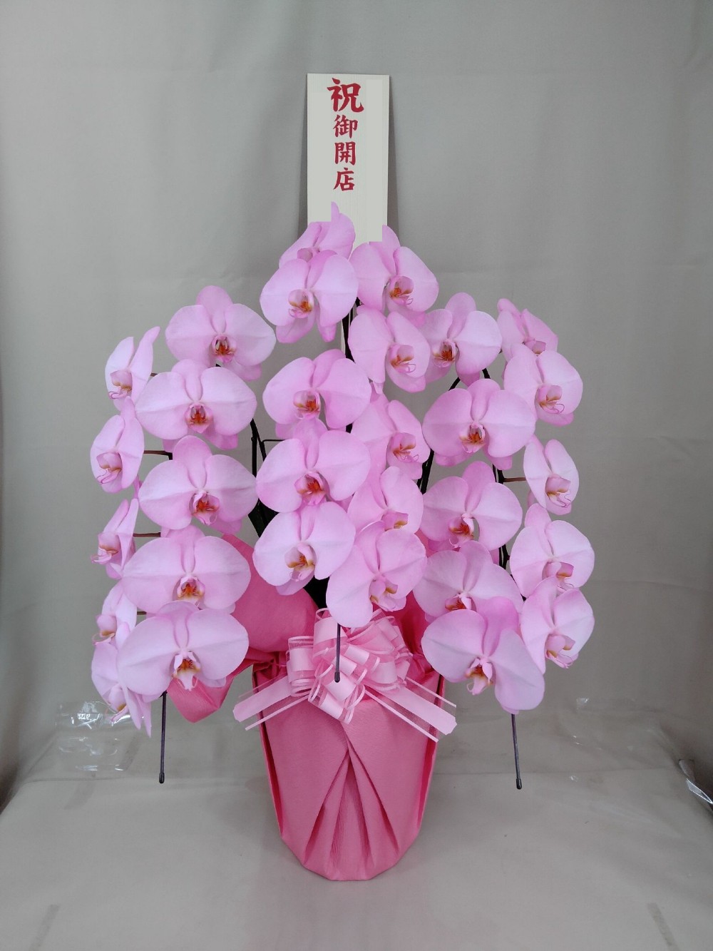 カラーバリエーションをお楽しみいただける胡蝶蘭・MIYABIシリーズ。 やわらかな華やぎと品のある佇まいが魅力の、 大輪胡蝶蘭 3本立・30輪(さくら)。 さくら色は「幸福」「門出」「優しさ」を象徴する、日本人に親しみ深いカラー。 新しいスタートを祝う場面に、温かく寄り添います。 3本立・30輪(つぼみ含む)の上品なボリューム感と柔らかな色合いが、空間を明るく優雅に演出。 祝福の気持ちをやさしく伝える一鉢です。