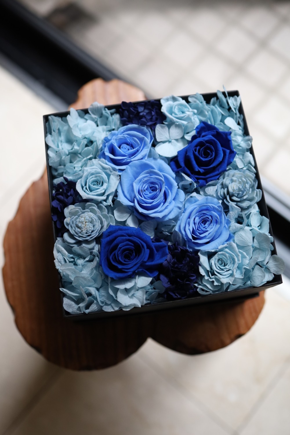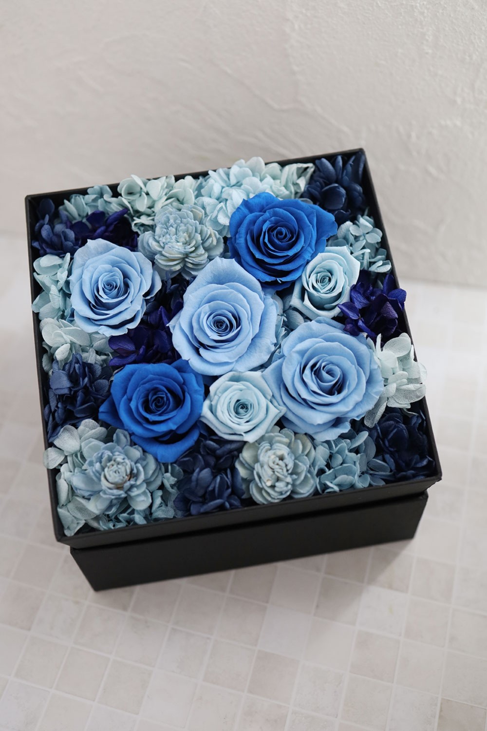 プリザーブドのボックスフラワー ブルー M