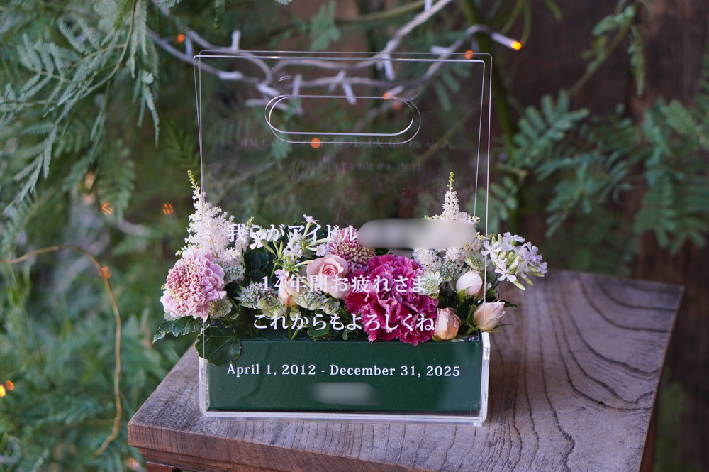 とてもキレイで同僚も感激して喜んでくれました。ありがとうございました。またお祝い等でプレゼントする事があればお願いしたいと思います。