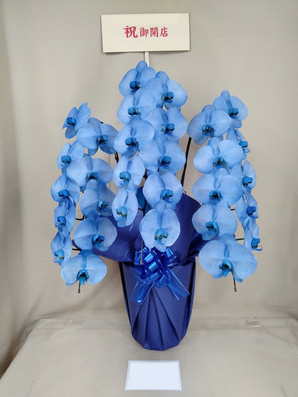 カラーバリエーションをお楽しみいただける胡蝶蘭・MIYABIシリーズ。 凛とした佇まいと静かな存在感を誇る、 大輪胡蝶蘭 3本立・30輪(ブルー)。 一輪一輪が大きく咲き誇る大輪タイプに、澄み渡るようなブルーの彩りを纏わせました。 青は「信頼」「誠実」「知性」を象徴する色。ビジネスシーンにおいて安心感と品格を同時に伝えます。 3本立・30輪(つぼみ含む)の堂々とした立ち姿は、エントランスや応接室にも映える存在感。 落ち着きと洗練を感じさせる、格調高い一鉢です。