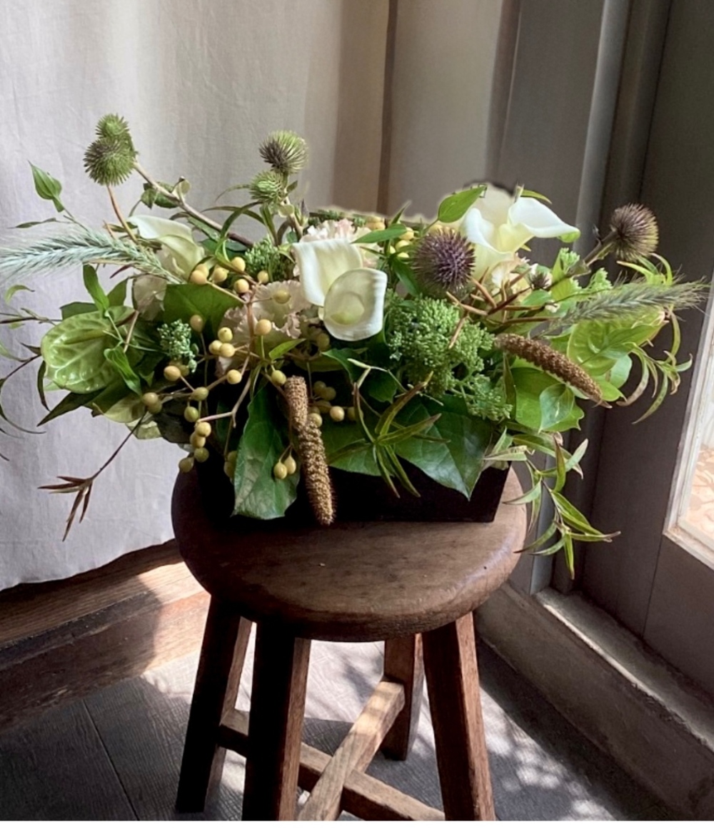 今回イメージ図は描かずに言葉でイメージを伝えさせていただきましたが、ヒアリングが丁寧でイメージ通りの素敵なお花を形にしていただけました!