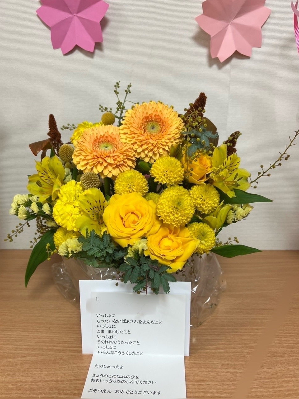 いつも適当な感じでしか要望をお伝えしていないのに、予想以上の素敵なお花に仕上がっているので牧さんにお願いして本当に良かったといつも思います。やっぱり自分がイイ!素敵!って思うプレゼント🎁をあげたいと思うので、送る私が嬉しいです☺️