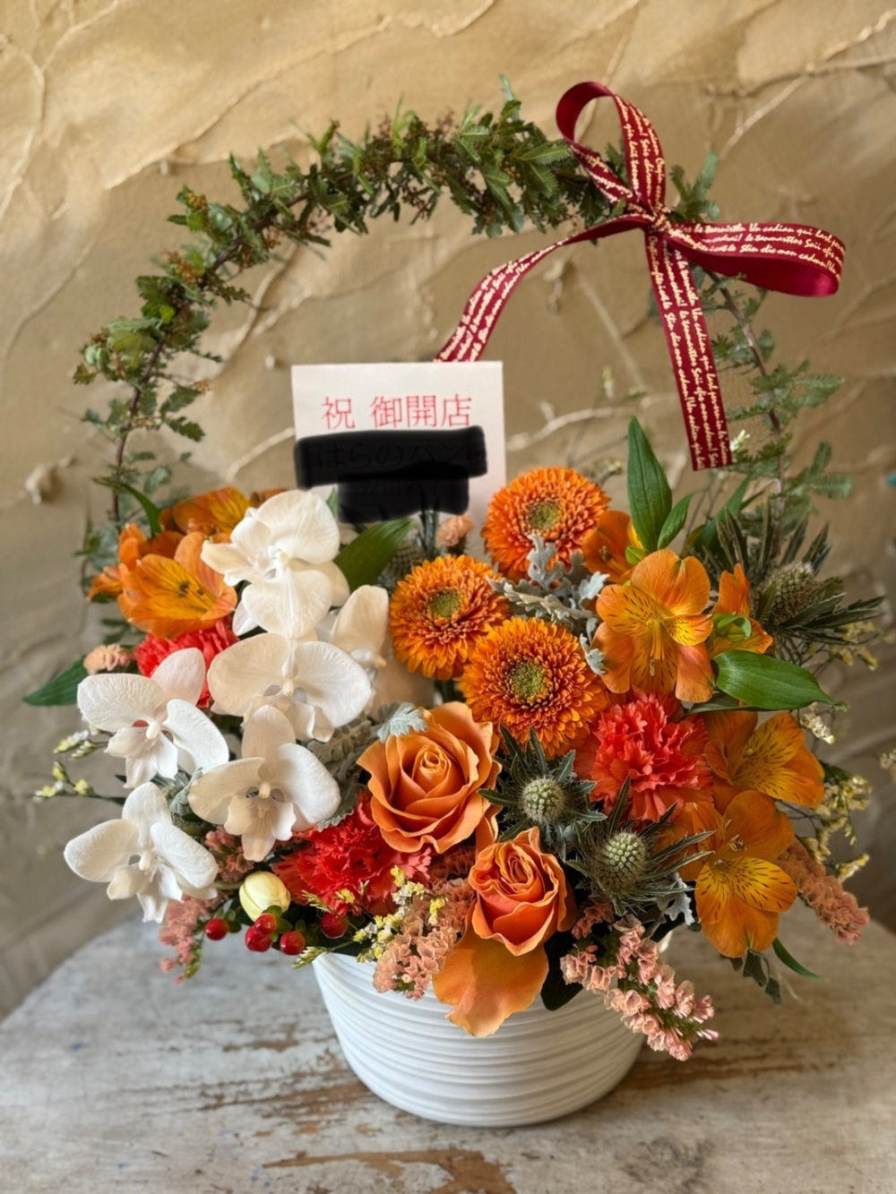 親族のお店オープンを記念した大切な贈り物だったので、フラワーデザイナーさんから小まめに連絡を頂けて安心することができました。仕上がった写真や発送の連絡なども頂けて丁寧な対応に感動しました。贈った側からも可愛いアレンジメントを気に入ってくれた様子でした。