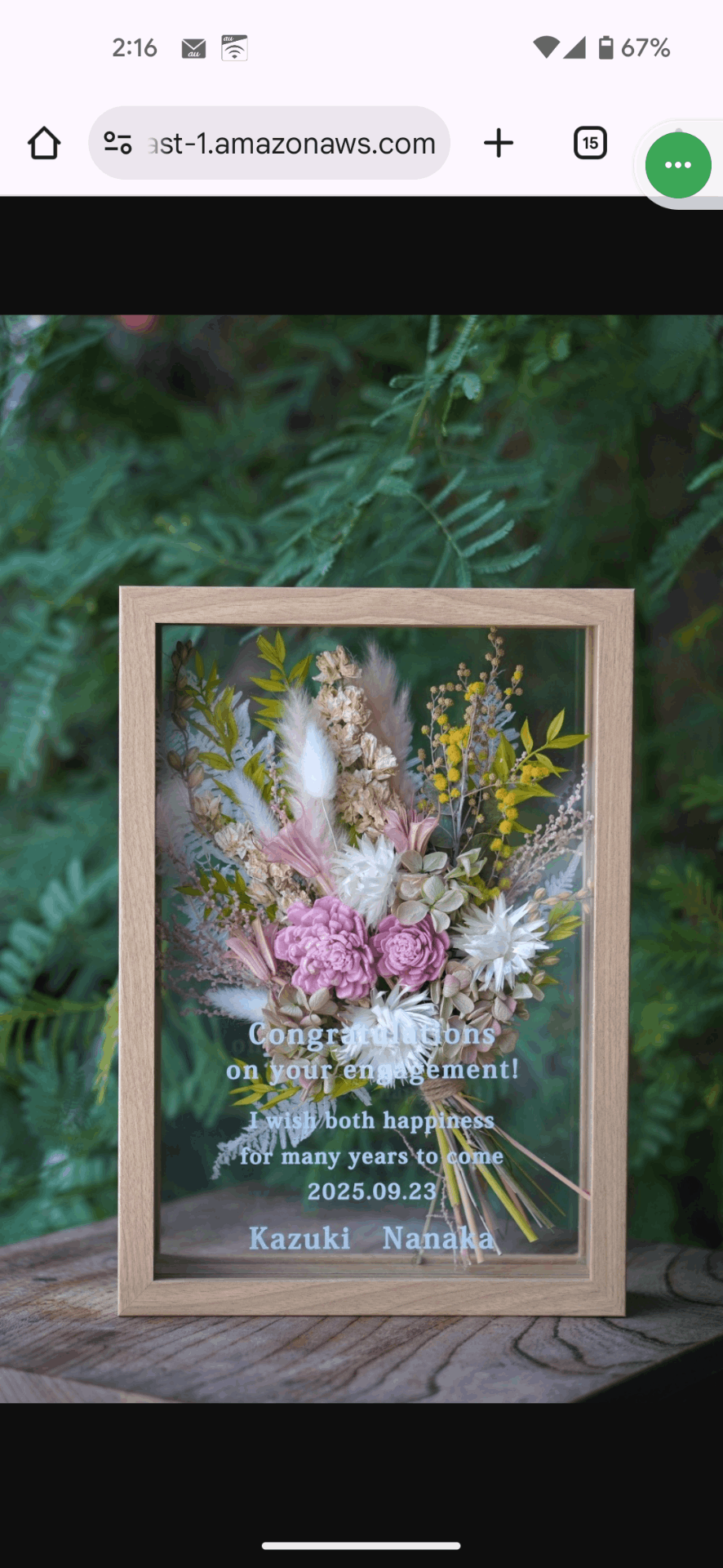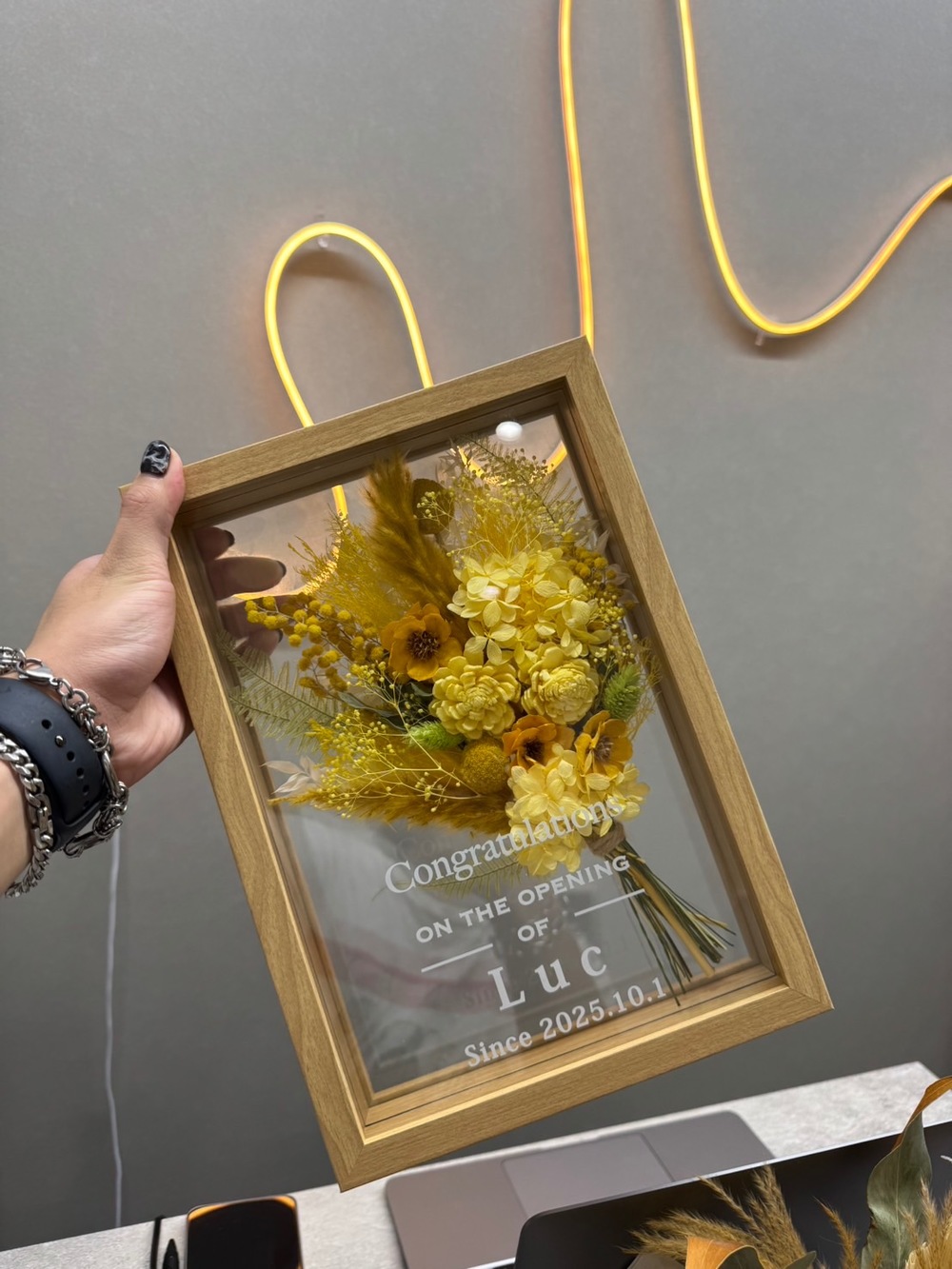 花が駄目になった後のアドバイスが書かれていたみたいで、額を使い長く飾れそうと喜んでいました。