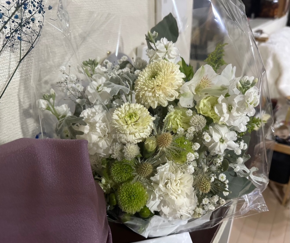 また使用したお花の名前を書いてくださっており、花言葉など調べてるととてもイメージに合ったもので季節のものも取り入れてくださっているのがとても嬉しかったです!