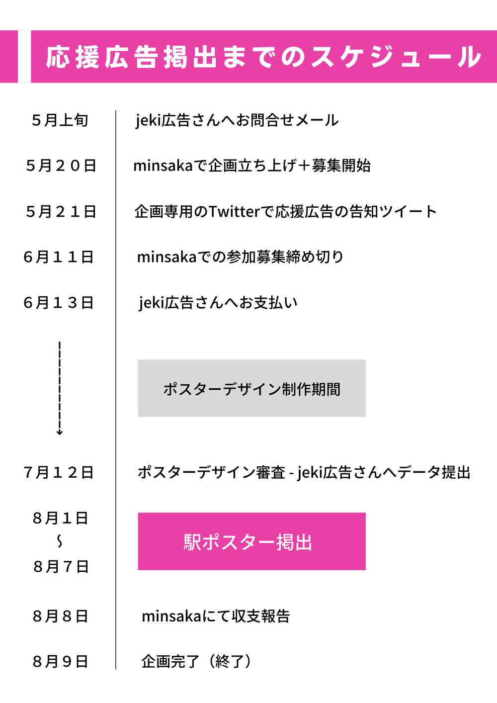 応援広告を掲出するまでのスケジュールを具体的に教えてください