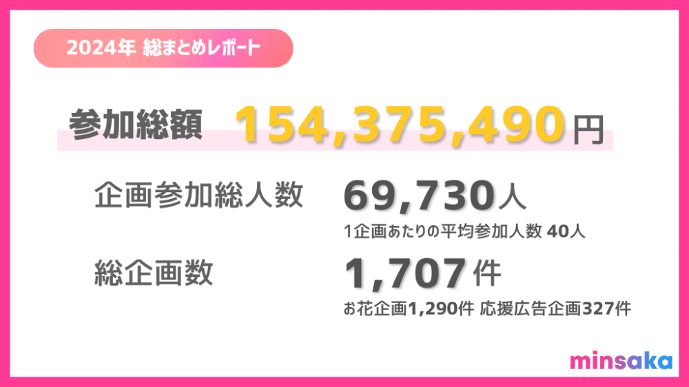 2024年のminsaka参加総額は1億5000万円を突破!