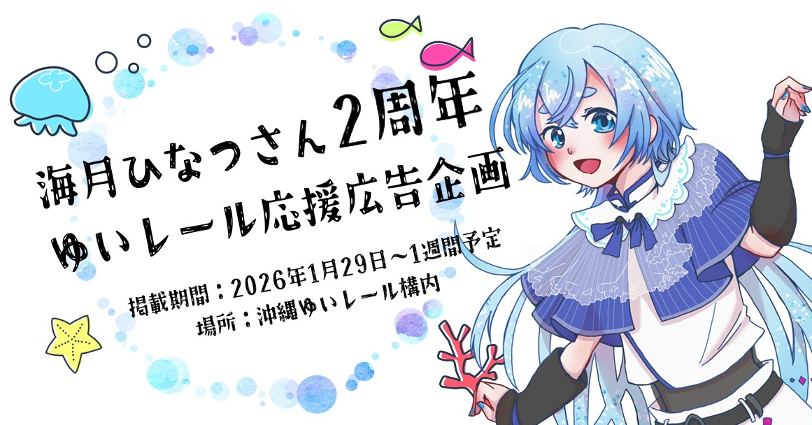 ひなつさんの住む南の島にあるゆいレールさんの構内に掲載させていただく予定です。