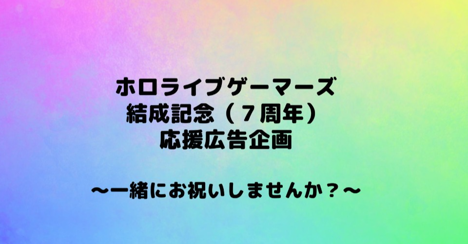 12月6日に7年目の結成記念を迎えるホロライブゲーマーズ(白上フブキ、大神ミオ、猫又おかゆ、戌神ころね)へ送るお祝いの応援広告企画