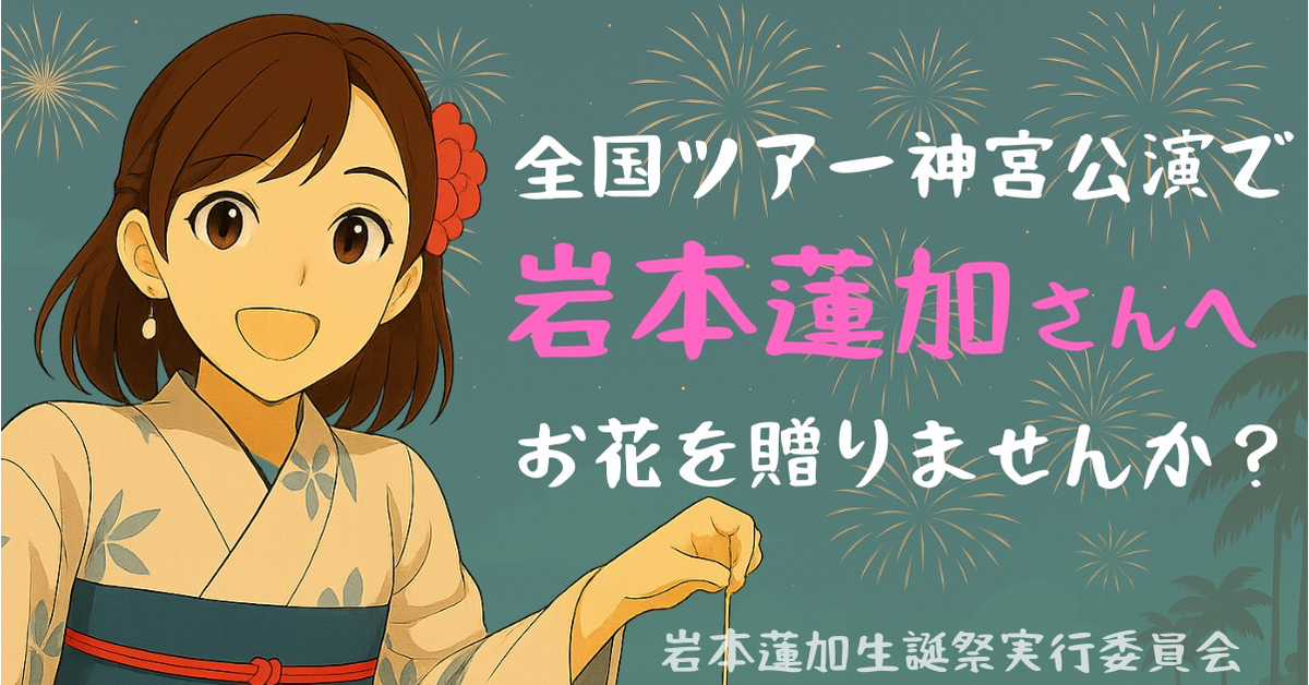 9月4日~9月7日に開催される真夏の全国ツアー2025神宮公演にて、岩本蓮加さんに、応援の想いを込めたお花を一緒に贈りませんか?