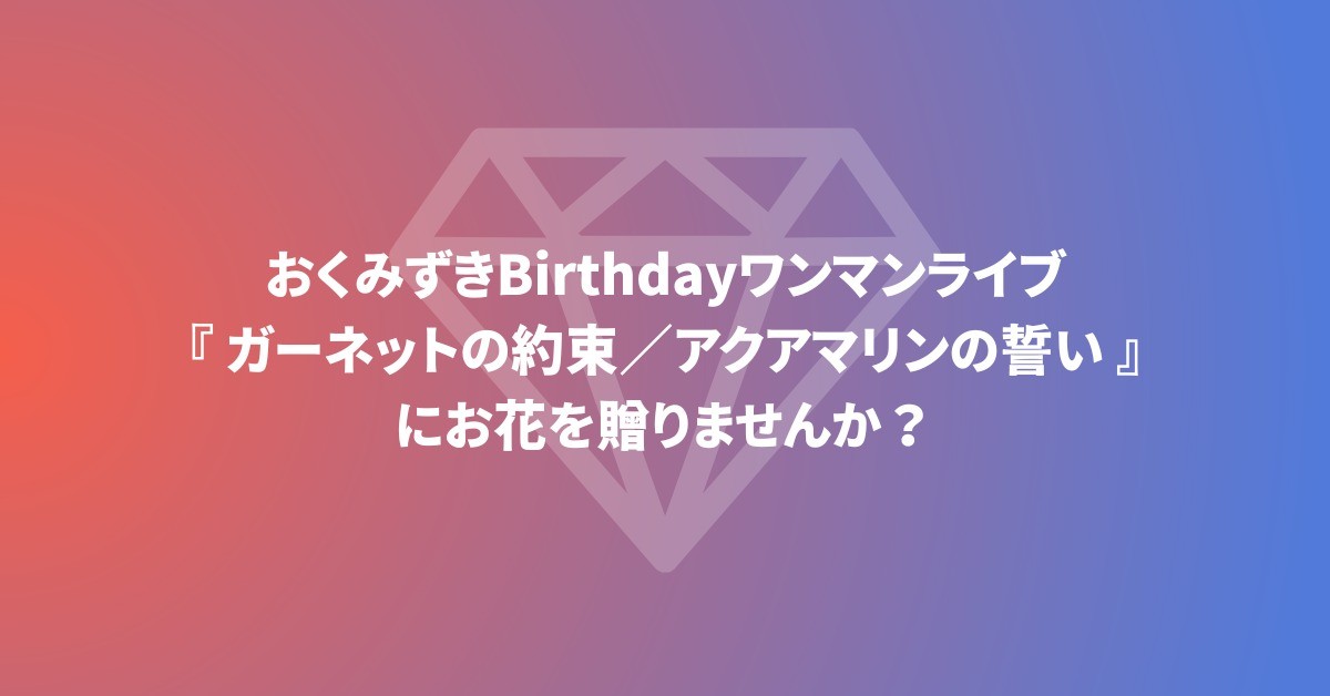 2026/5/2(土)開催の おくみずきBirthdayワンマンライブ『ガーネットの約束/アクアマリンの誓い』にお花を贈る企画です。