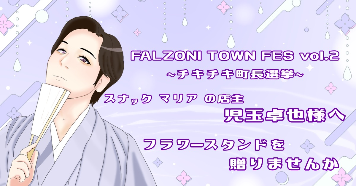 【第2回 FALZONI TOWN FES】にて児玉卓也さんへフラワースタンドを贈る企画です。