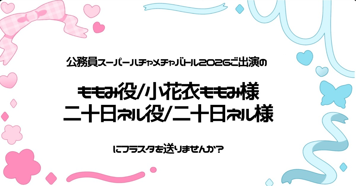 2026.2.23日に開催されるストグラ公務員スーパーハチャメチャバトルにて小花衣ももみさんと二十日ネルさんにフラスタをお送りする企画です。どなたでも参加希望いただけます!