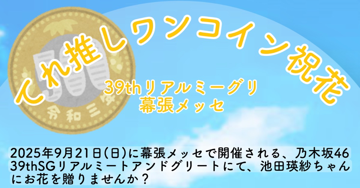 9/21(日)に幕張メッセにて開催される39thリアルミート&グリートへ出演する池田瑛紗ちゃんへの祝花企画です。