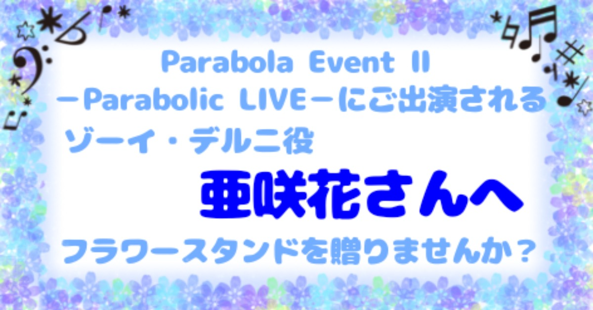 【12/31締切】「Parabola Event Ⅱ -Parabolic LIVE-」にご出演されるゾーイ・デルニ役亜咲花さんへフラワースタンドを贈りませんか?