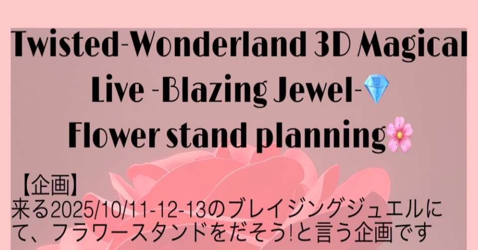 来る2025/10/11-12-13のブレイジングジュエルにて、フラワースタンドをだそう!と言う企画です