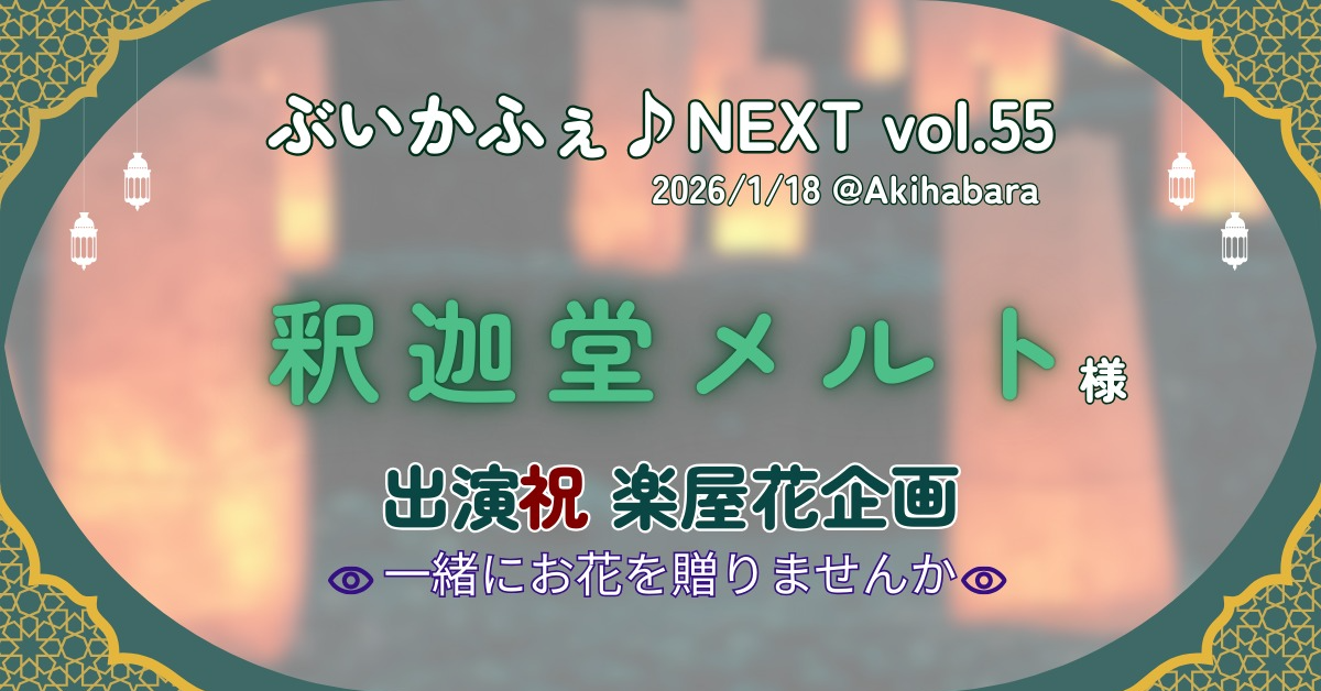 「ぶいかふぇ♪NEXT vol.55」にご出演予定の釈迦堂メルト様宛に、お祝いの楽屋花を贈りませんか?Seeking support to send flowers to her for Vcafe♪NEXT vol.55 (Jan 18)