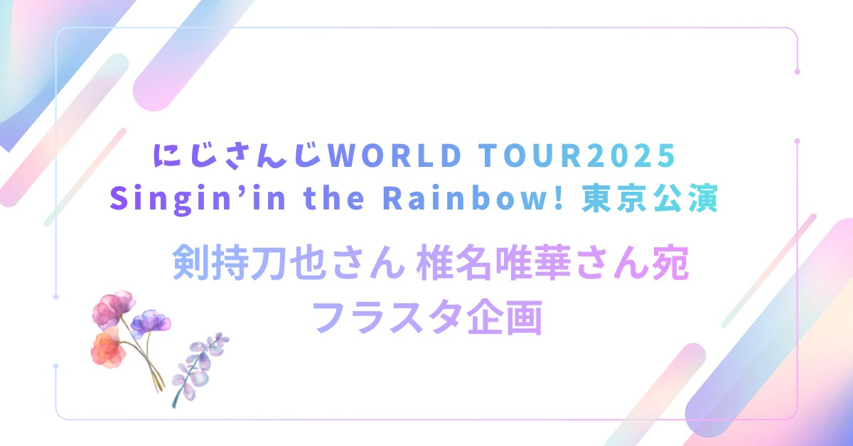 【にじさんじ WORLD TOUR 2025】SitR東京公演に出演される剣持刀也さん、椎名唯華さんへご出演を祝い、応援のフラワースタンドを贈る企画です。