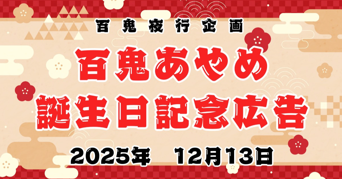 百鬼あやめ様の誕生日(12月13日)を祝うための企画として、駅広告の掲載をします。