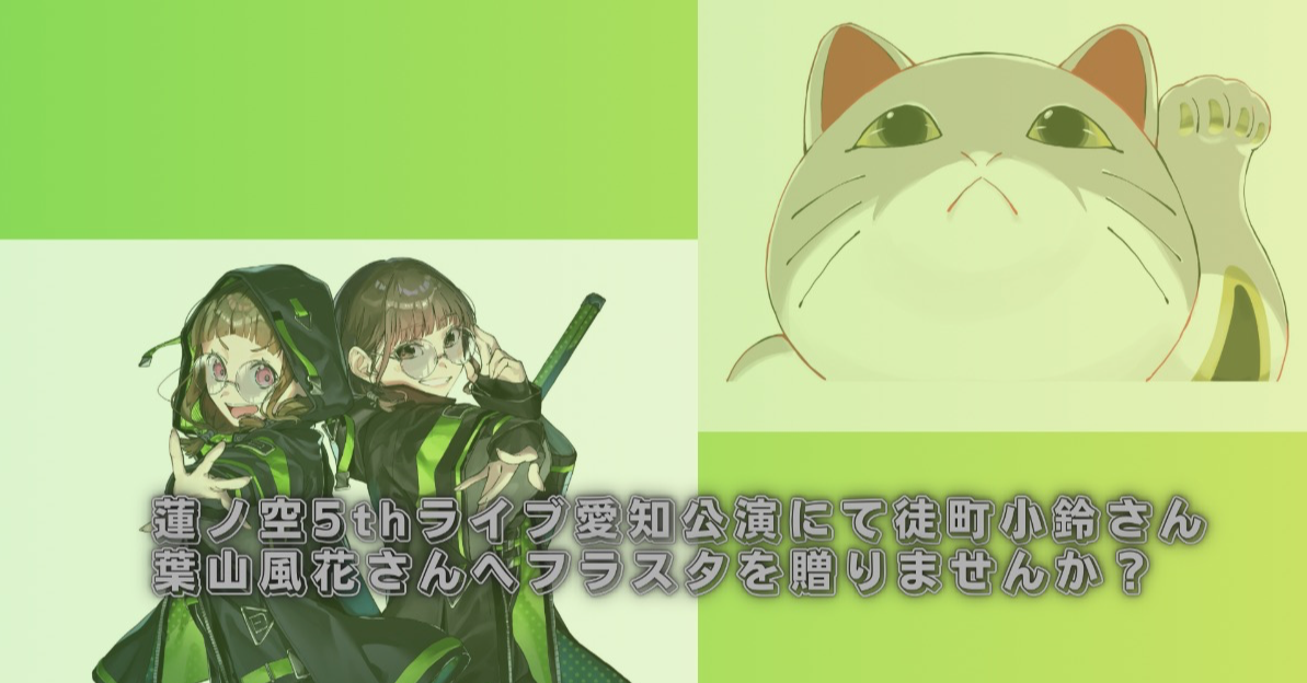 蓮ノ空女学院スクールアイドルクラブ 5th Live Tour ~4Pair Power Spread!!!!~愛知公演へ徒町小鈴さんと葉山風花さんへフラスタを贈る企画です。