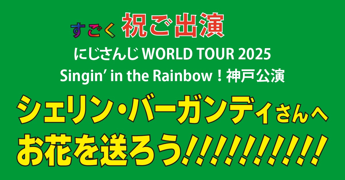 2025/8/30に神戸国際会館こくさいホールにて開催される にじさんじWORLDTOUR2025 Singin'in the Rainbow!神戸公演に出演される シェリン・バーガンディ さんへ楽屋花を送りたいという企画です。