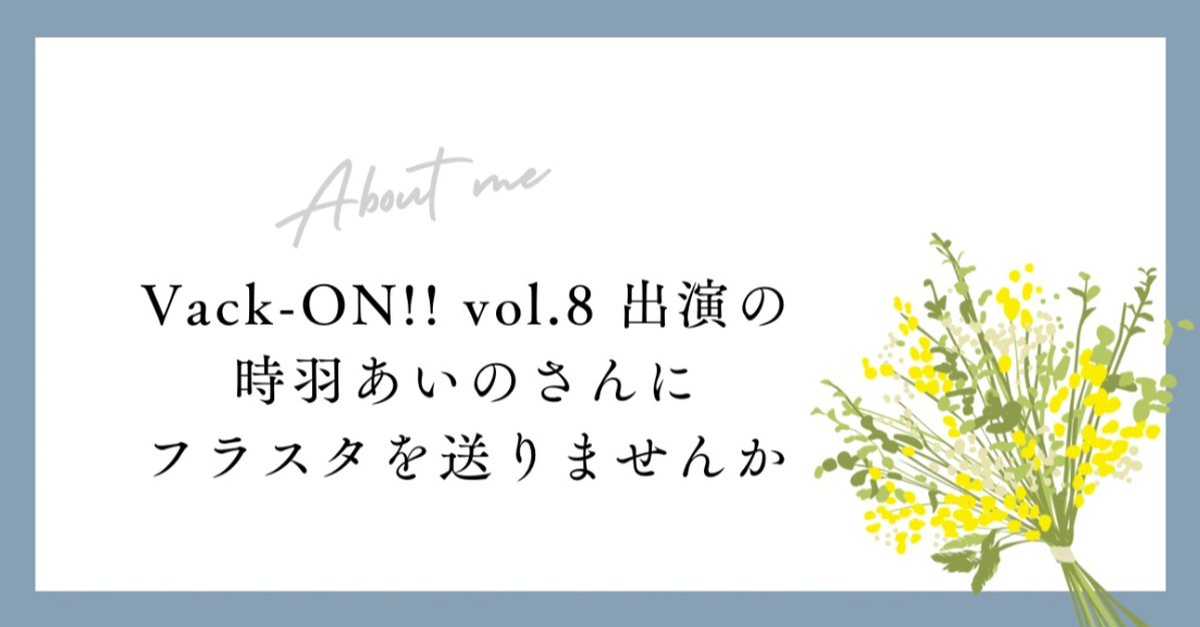 Vack-ON!! vol.8に出演される時羽あいのさんにフラスタを贈る企画になります