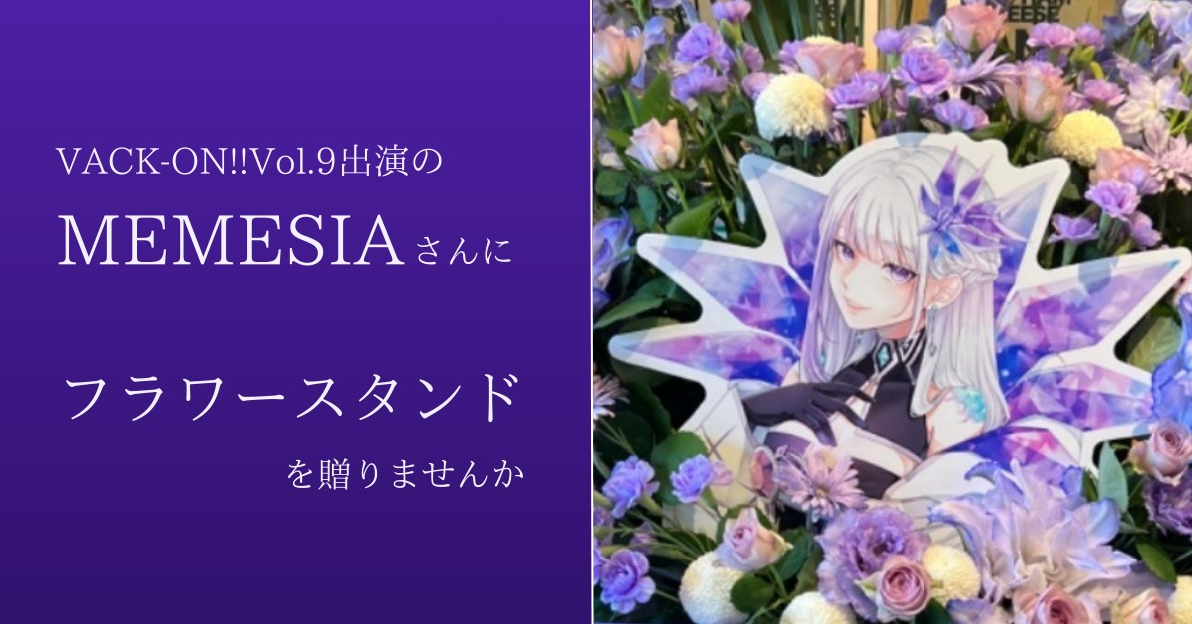2026年1月26日開催の Vack-ON!! Vol.9 に出演予定の、めめたんこと MEMESIA さんへフラワースタンドを贈る有志企画です。
