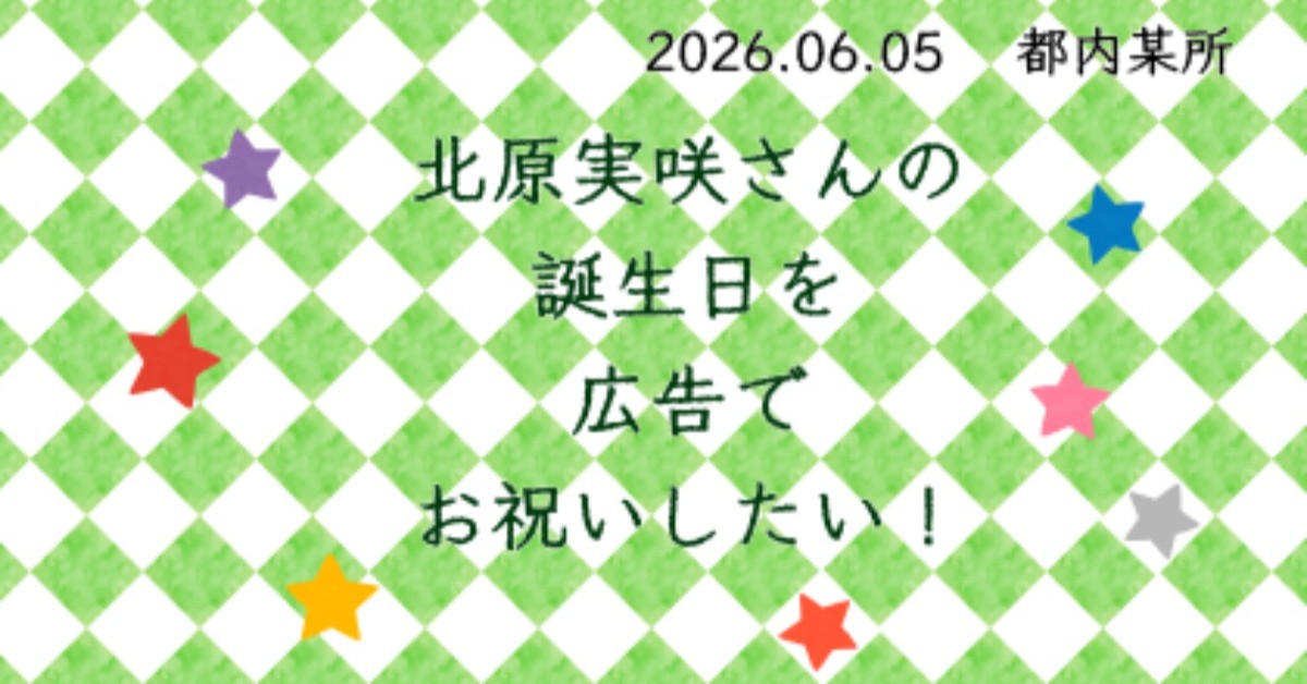 6月5日に誕生日を迎える北原実咲さんへ誕生日広告を掲出したく企画いたしました!