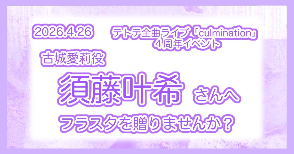 4/26 テトテ全曲ライブ&4周年イベントで須藤叶希さんへフラスタを贈りませんか?