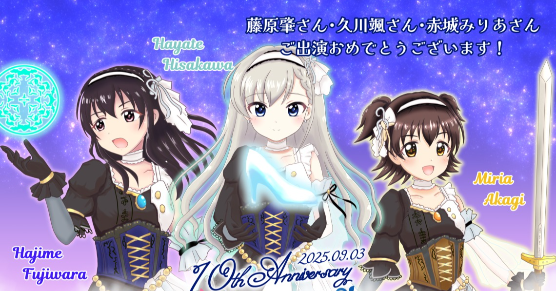 デレステ10thツアー 神奈川公演(Kアリーナ横浜)の開催にあわせて、久川颯ちゃん、藤原肇ちゃん、赤城みりあちゃんの応援広告を出す企画です!