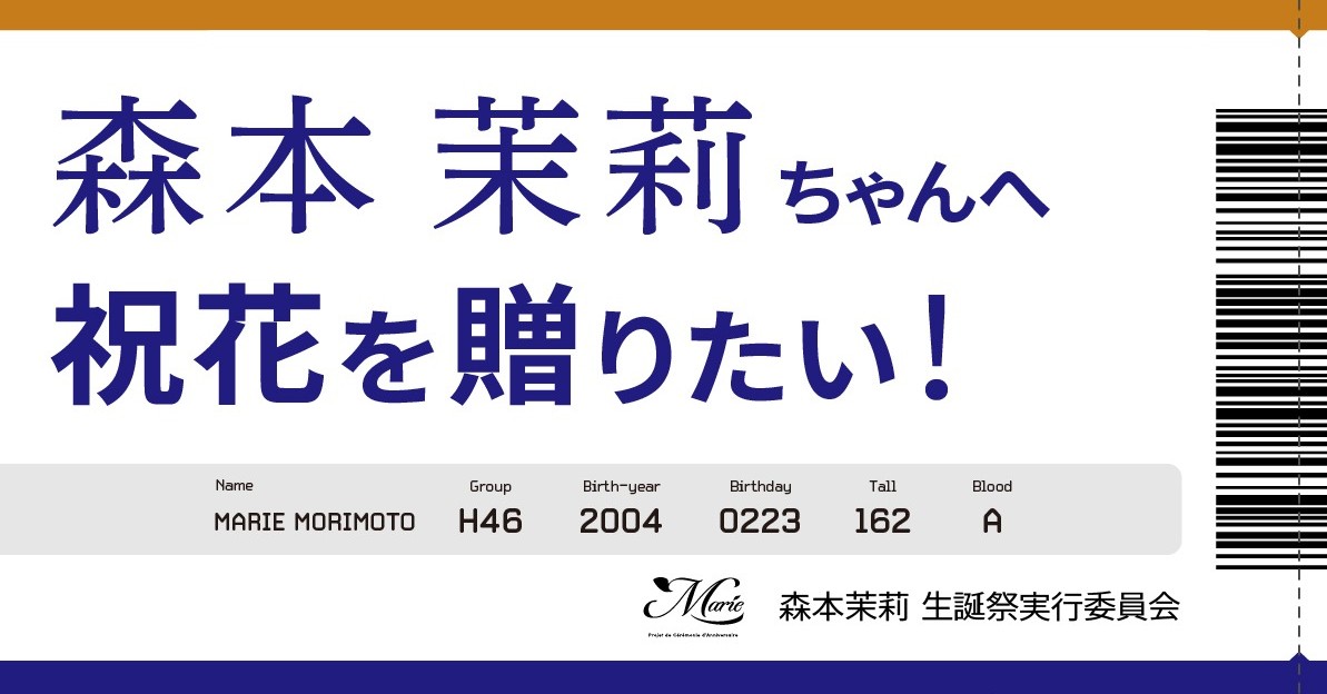 【2/17~18ひなた坂LIVE】森本茉莉さんにお花を贈りませんか?