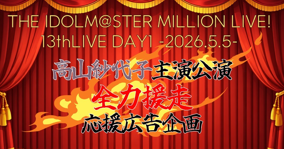 来たる2026年5月5日に有明アリーナで開催されるTHE IDOLM@STER MILLION LIVE! 13thLIVE DAY1 『全力援走』を記念して