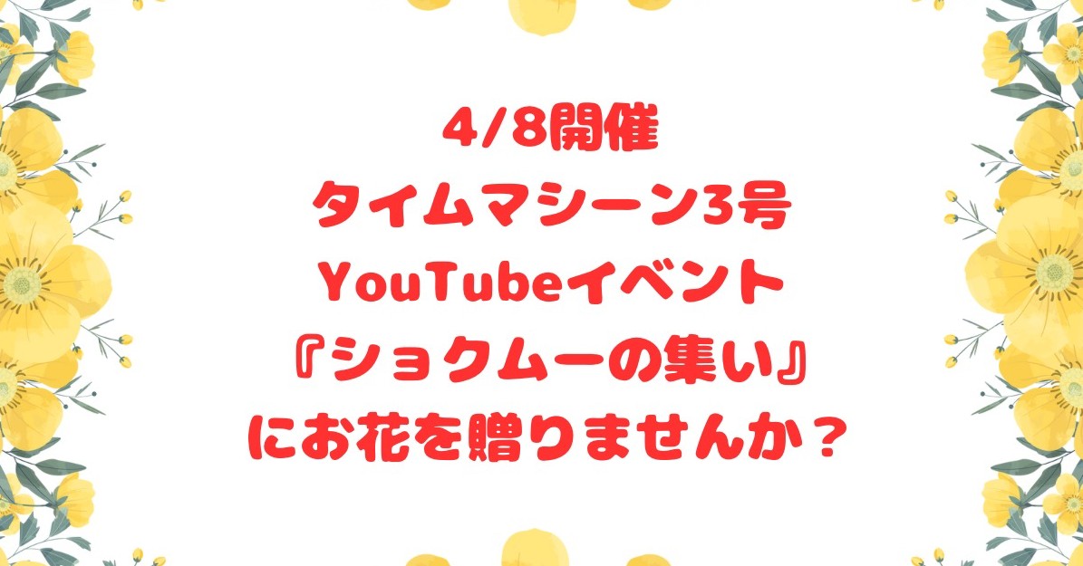 4月8日に開催されるタイムマシーン3号のYouTubeのイベント『ショクムーの集い』に花を贈りませんか?