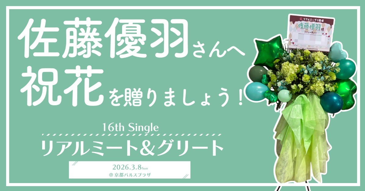 佐藤優羽さんへ祝花をお贈りしましょう!【16thリアミ@3/8京都】