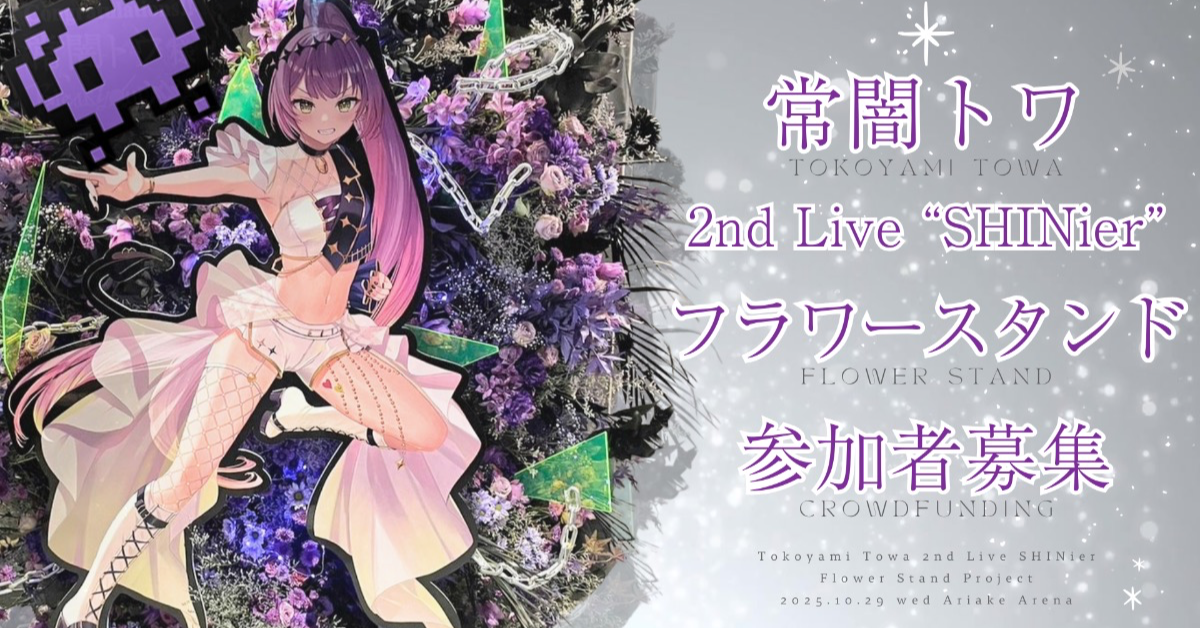 常闇眷属のみなさんと、常闇トワ様の2ndソロライブ「SHINier」にフラスタを贈るクラウドファンディングプロジェクトです!