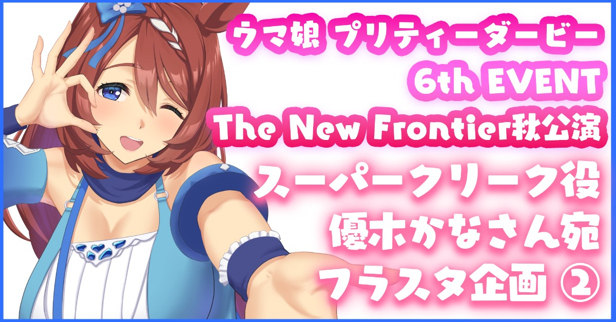 10/18,10/19開催の【6th EVENT The New Frontier秋公演】にご出走されるスーパークリーク役優木かなさんにフラスタを贈る企画です!