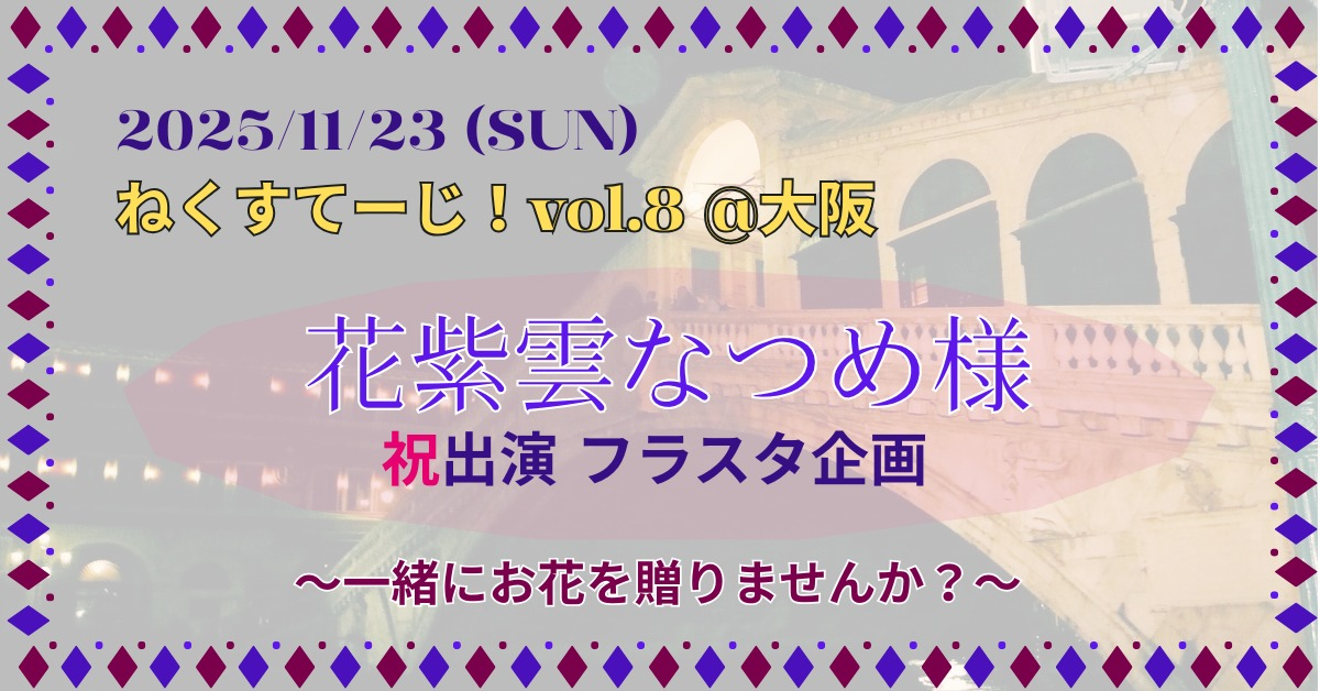 「ねくすてーじ! vol.8」にご出演予定の花紫雲なつめ様宛に、お祝いの楽屋花を贈りませんか?Seeking support to send flowers to her for NextStage! vol.8 (Nov 23)