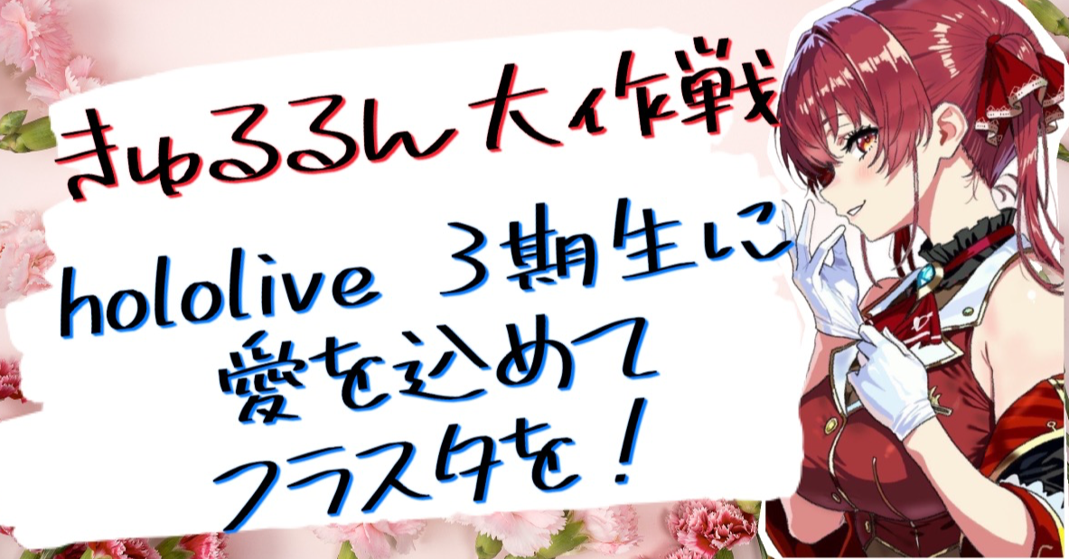 hololive 3期生1st EP『#きゅるるん大作戦』を記念し、有志によるスタンドフラワーを贈ります。3期生4人への感謝と応援を込めて。