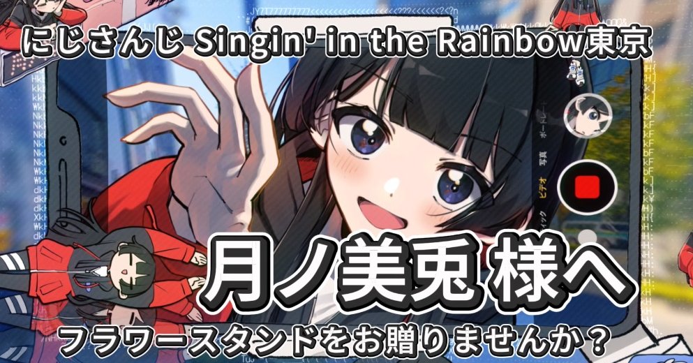 Singin’ in the Rainbow! 東京公演へご出演される月ノ美兎 様へフラワースタンドを贈ると同時に月ノ美兎様にとある感謝を伝えます。