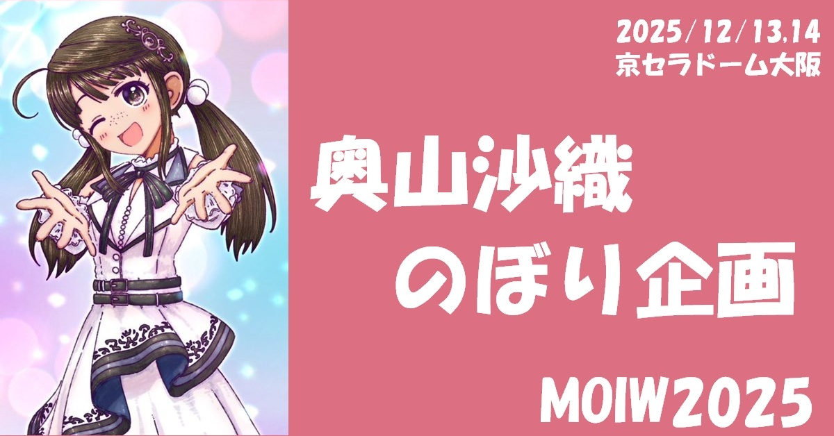 2025年12月13,14日に開催される 「THE IDOLM@STER M@STERS OF IDOL WORLD 2025」にて、奥山沙織をデザインしたのぼりを立てます。