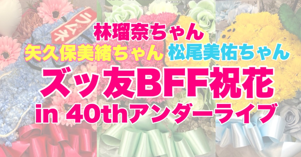 林瑠奈ちゃん、矢久保美緒ちゃん、松尾美佑ちゃんのBFFな3人が集まる最後の機会、40thアンダーライブにてお花を贈る企画です。