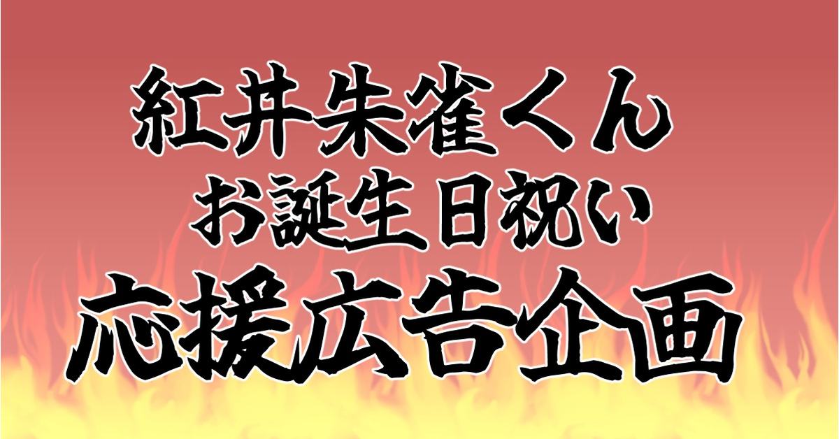 315プロダクション所属、神速一魂の紅井朱雀くんのお誕生日応援広告を出す企画です。