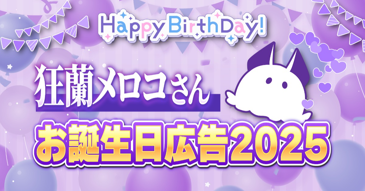 狂蘭メロコさんのお誕生日(2025/10/29)をお祝いする広告企画です。