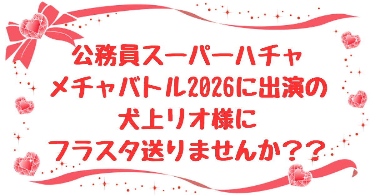 2/23に横浜BUNTAIにて開催される公務員スーパーハチャメチャバトル2026に出演される犬上リオさん(Rioさん)宛のフラスタ企画です。一緒にフラスタを贈りませんか?