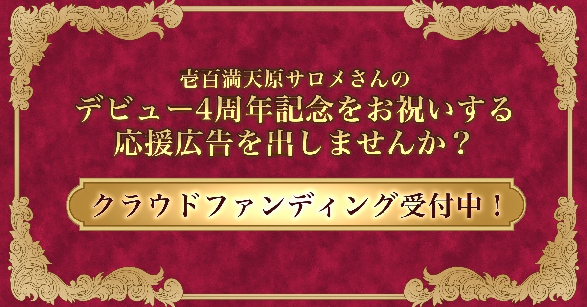 本企画をご覧いただき、誠にありがとうございます。来る2026年5月21日、壱百満天原サロメお嬢様が、デビュー4周年を迎えられます。